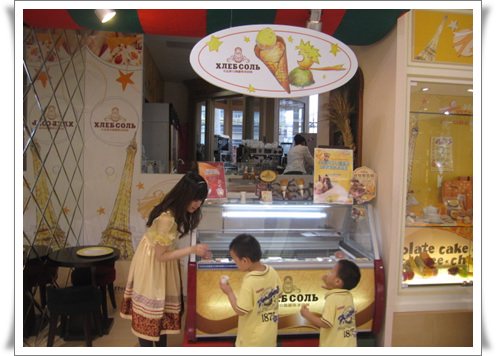 入口左側有之販售知名冰淇淋 甜美的店員看到我們家兩ㄓ小犬