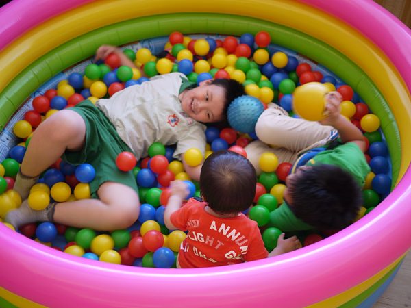 為了培養小安安的拍照情緒.兩個哥哥默默從球池離開,剩小安安一個人^_^