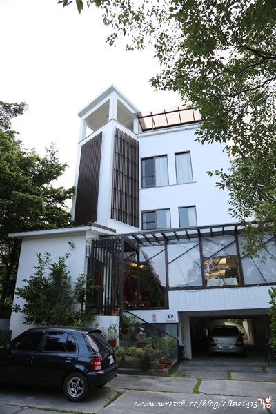 外觀時尚,四周充滿山林氣息的白色建築,有種遠離塵囂的恬靜