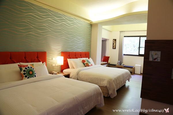 三樓的景觀四人房,花色略有不同,空間設計是一樣的,感覺就很舒適吧