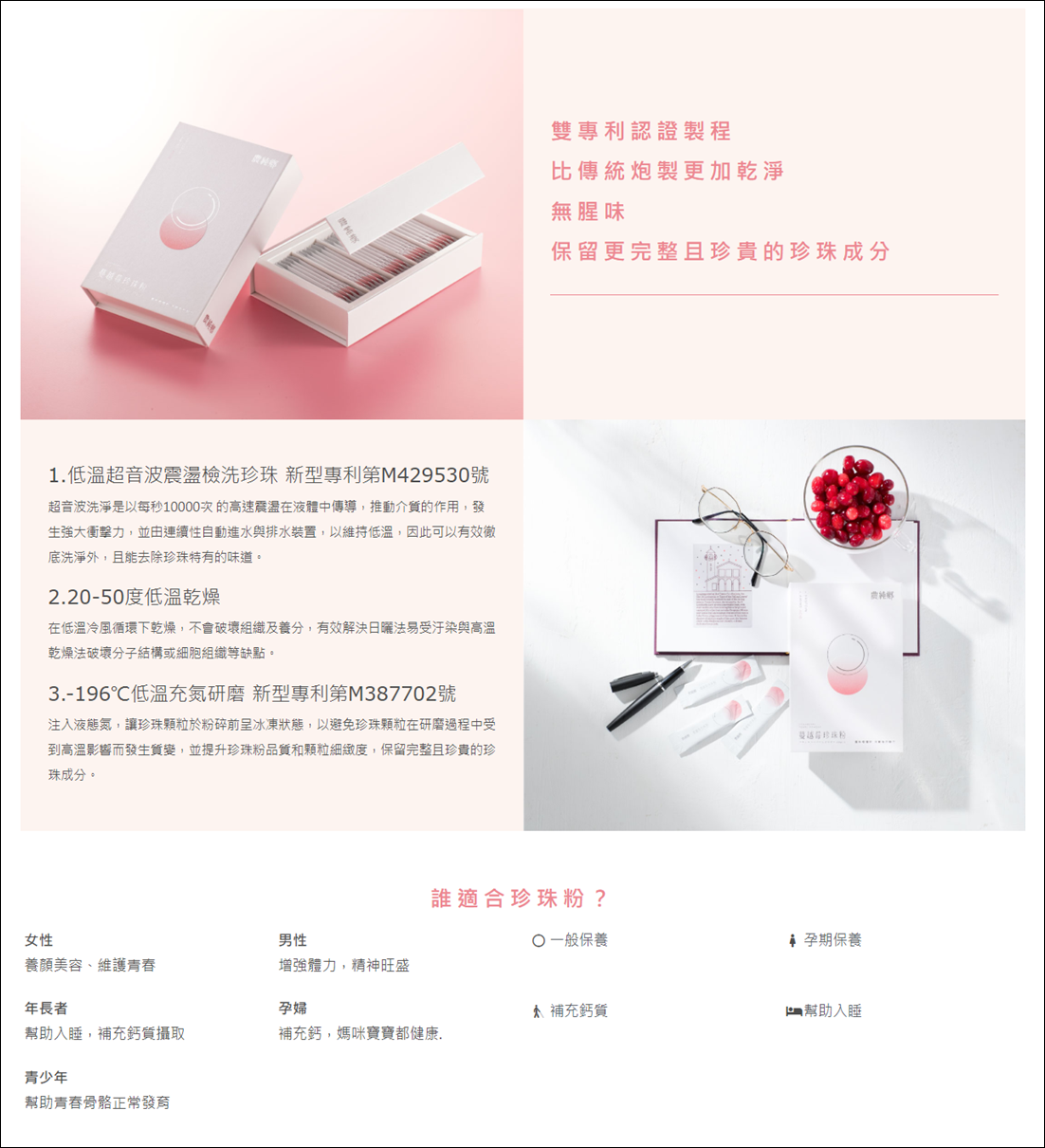 加入超微米珍珠粉、紅藻鈣、大本山益生菌